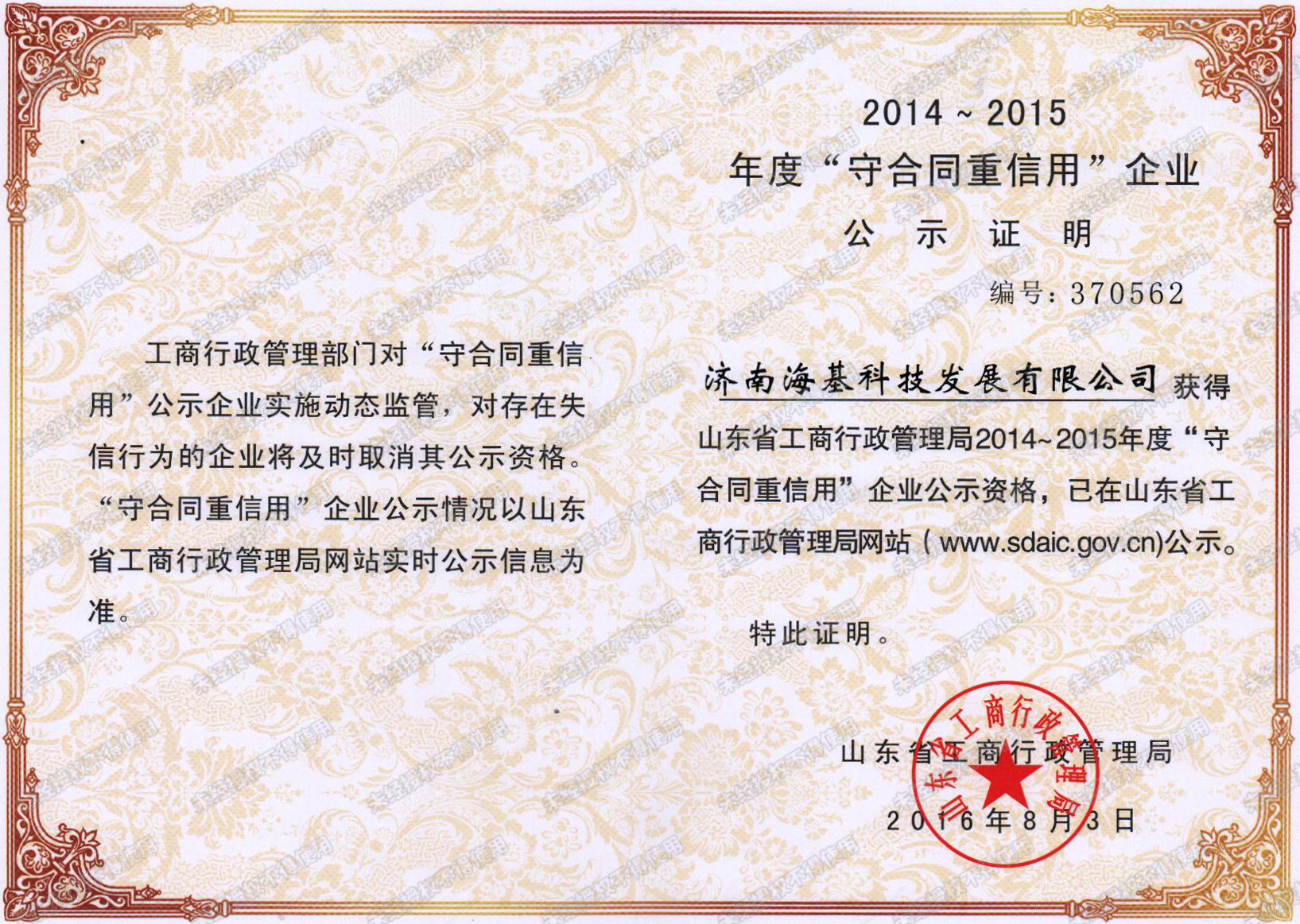 山东省公共安全技术防范协会会员证书