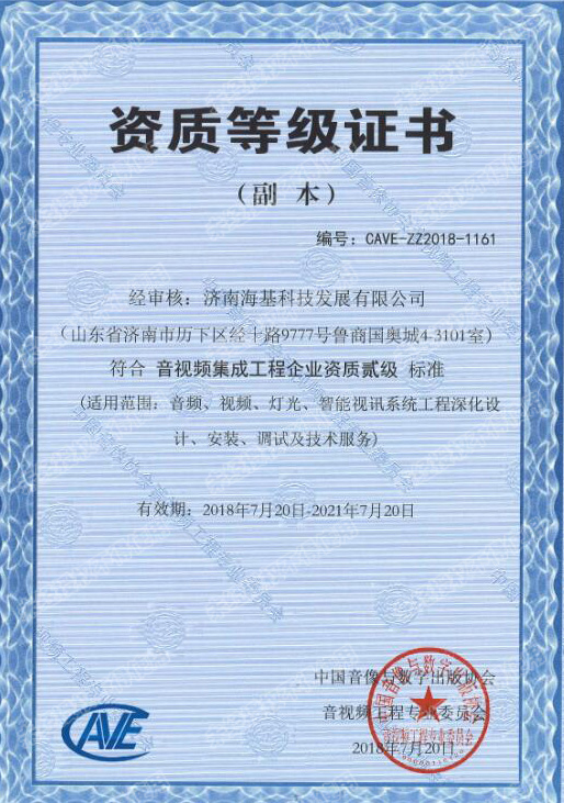 音视频集成工程企业资质二级证