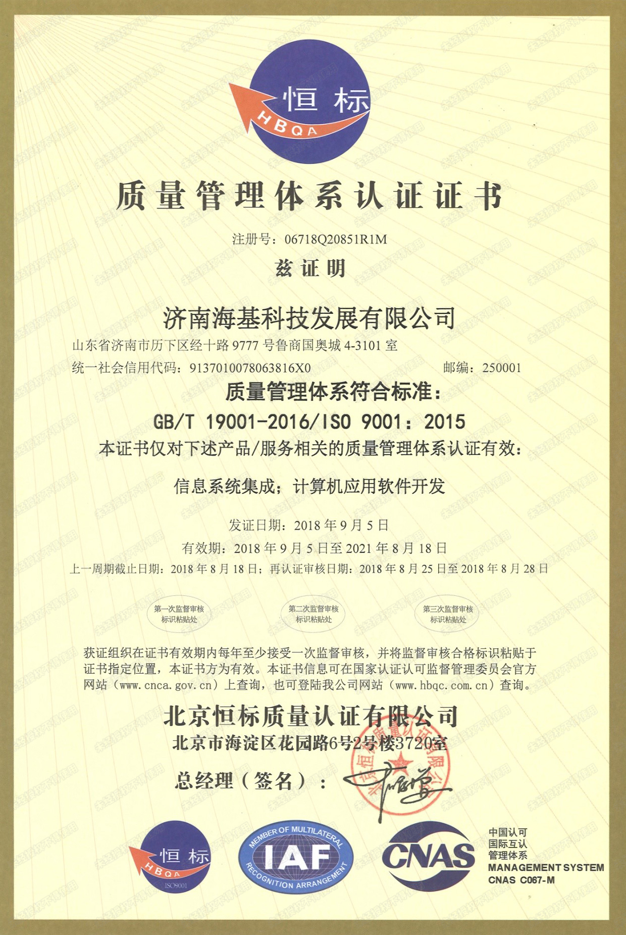 质量管理体系证书